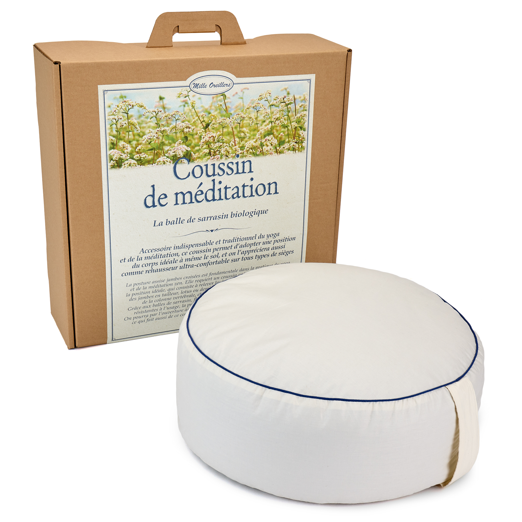 Housse en lin spécifique en option sous le nom de Housse en lin pour coussin de méditation, référence TSAR5, proposée plus bas sur cette page en « Article suggéré ».
