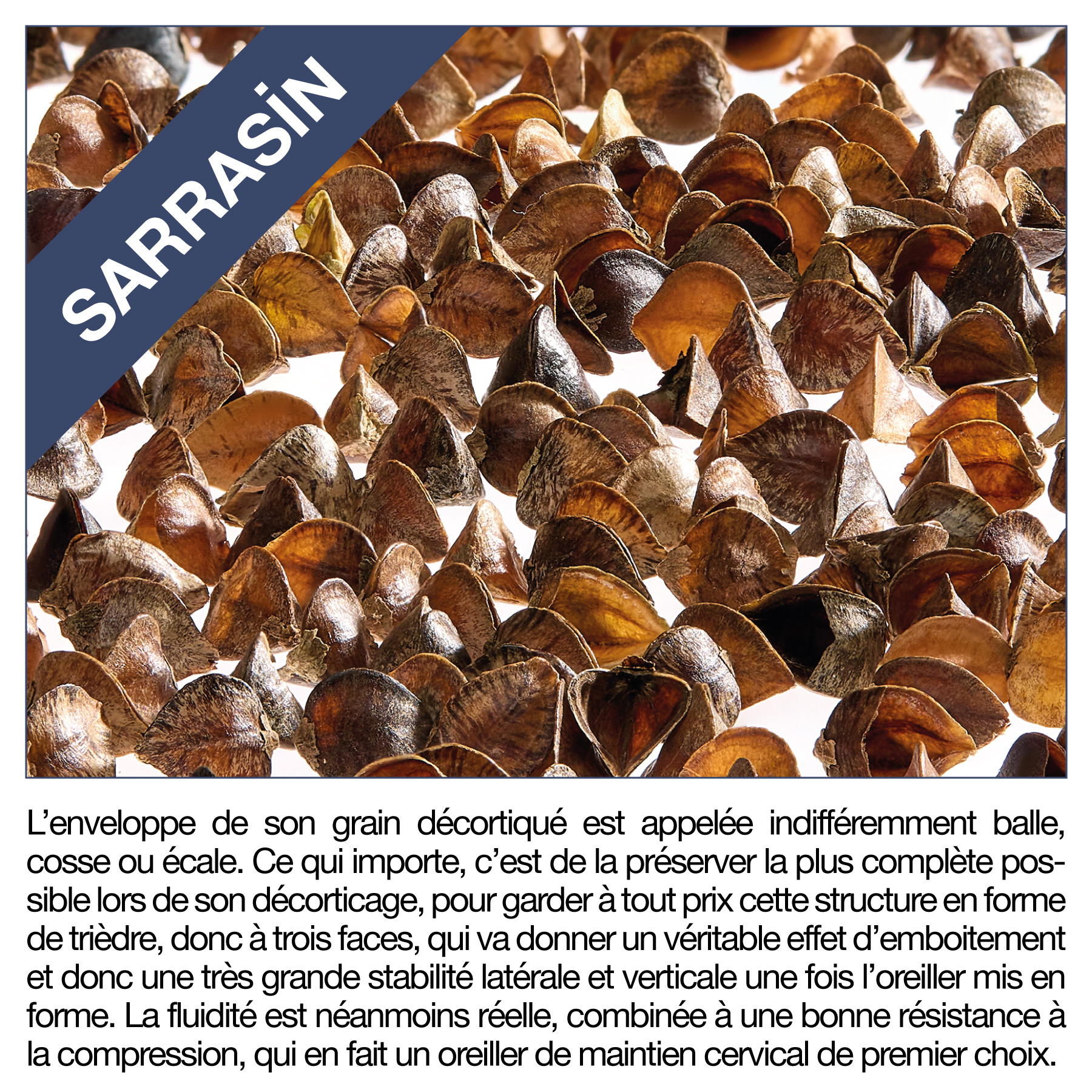 • sarrasin : stabilité par le poids, excellent maintien et fraicheur incomparable.