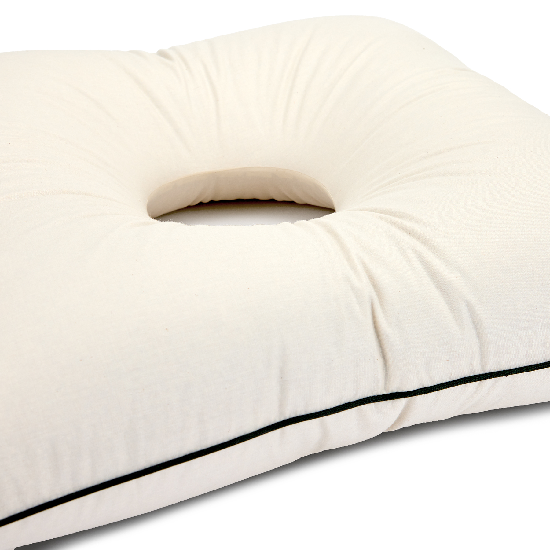 Fourni avec une taie en coton motif traditionnel Asanoha (« fleur de chanvre »), également proposée séparément pour le change, voir plus bas en « Article suggéré », sous le nom de Taie coton Asanoha pour Oreiller à trou auriculaire 40 x 40 cm , réf. TOTA1.