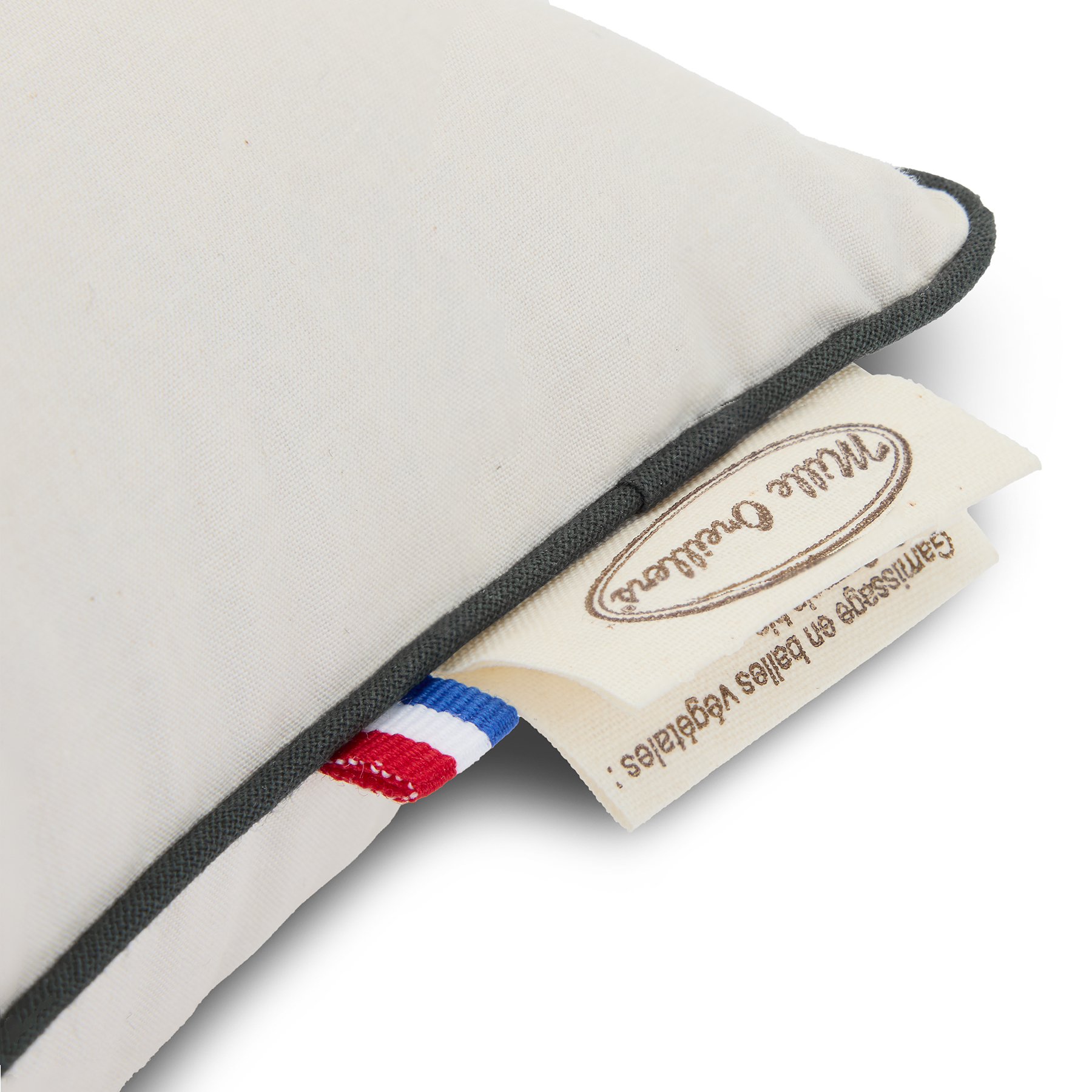 Taie coton lavable à 40°, ainsi que la housse primaire du coussin, séparément une fois vidée de son contenu.