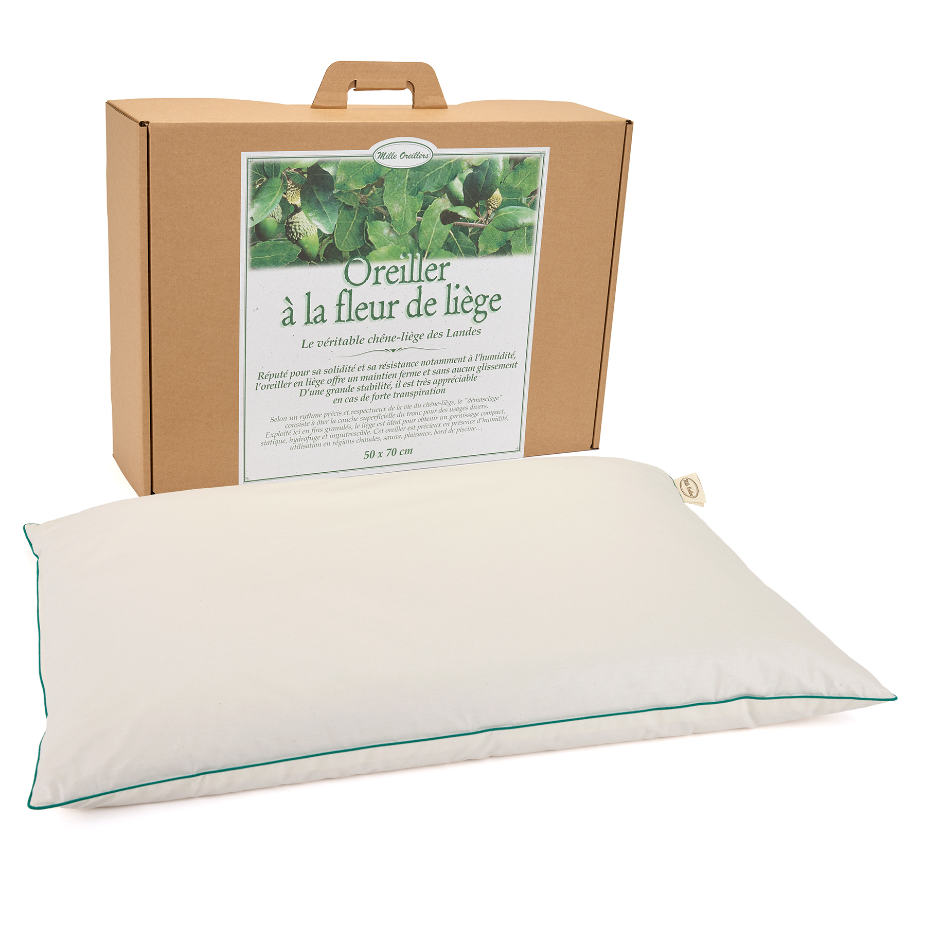Le liège issu de la couche supérieure du tronc par l’opération du démasclage, une fois bouilli, dépoussiéré et débité en fins granulés de 2 à 3 mm, donne un toucher d’oreiller très particulier, compact, incompressible et sans aucun glissement latéral, d’une très grande stabilité.