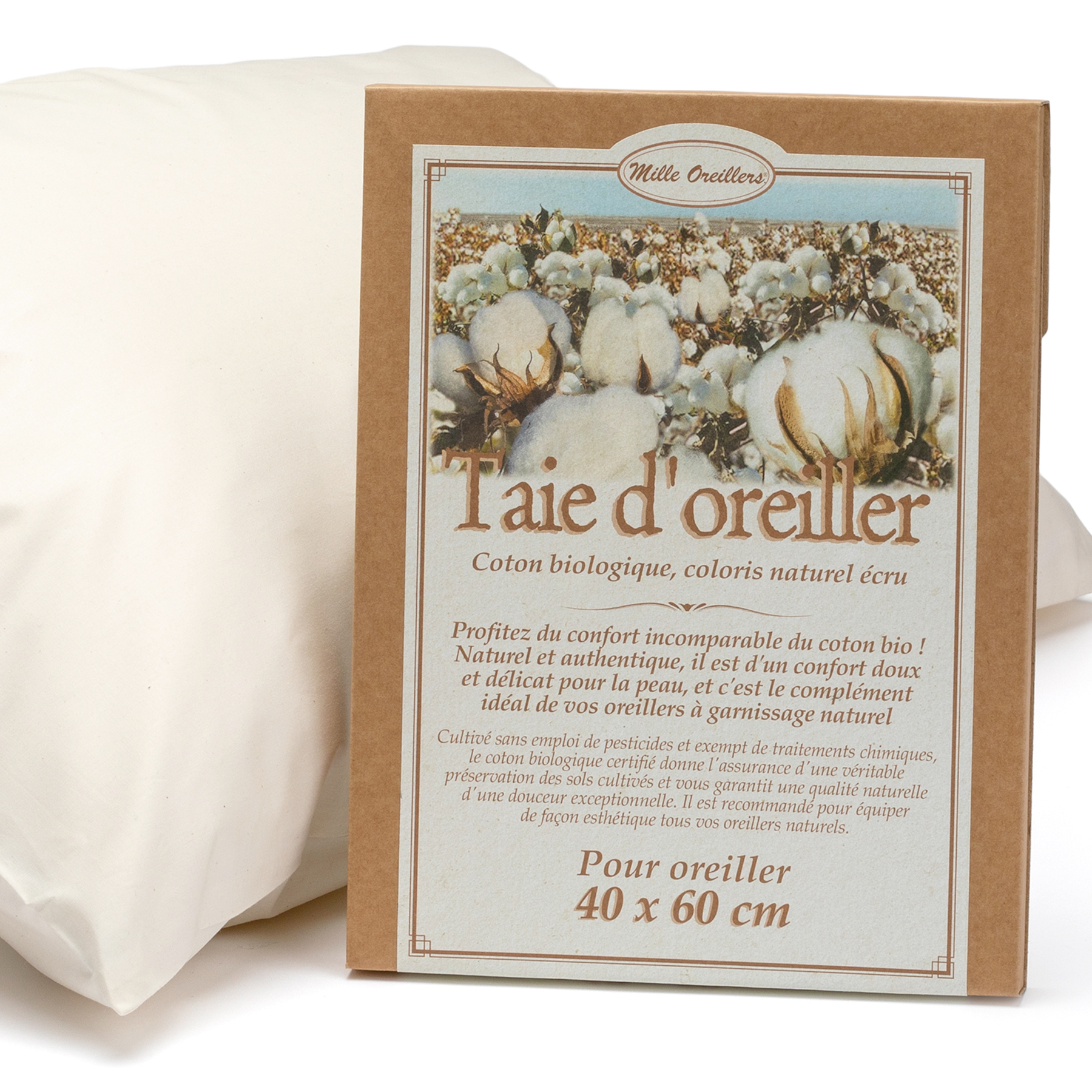 Réalisées dans un beau et fin tissage de coton de qualité percale, très douce au toucher, nos taies dites « taies droites », donc sans volant, sont proposées dans la couleur naturelle écrue du coton brut, sans aucun traitement d’aucune sorte, pour profiter de vos oreillers avec un maximum de pureté.