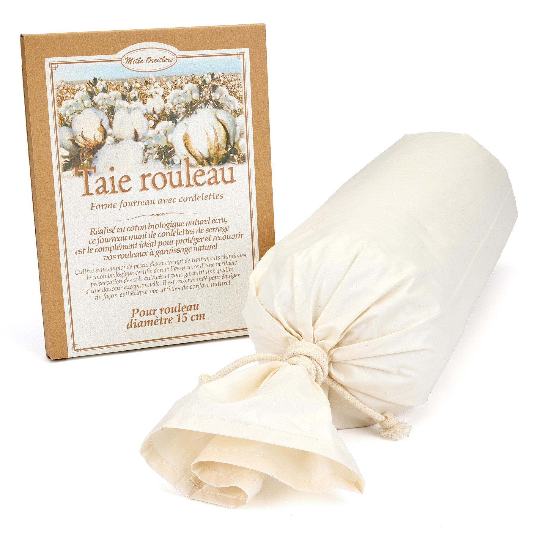 Cette taie en forme de fourreau est conçue pour recouvrir trois articles différents de la gamme Mille Oreillers : le rouleau en balles d’épeautre, l’oreiller chinois et l’oreiller suédois.